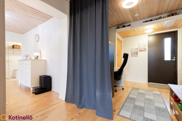 Huoneistolla on kaksi sisäänkäyntiä, mikä tarjoaa erinomaiset mahdollisuudet esimerkiksi kotitoimistolle tai erilliselle työtilalle omalla ovella.