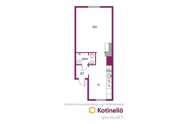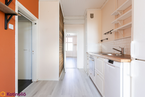 Tehokaspohjainen läpitalon yksiö erillisellä isolla keittiöllä, tilavalla huoneella ja täysikokoisella kylpyhuoneella sijaitsee rauhallisessa, hyvin hoidetussa taloyhtiössä. Asunto on tilava ja neliöitään isomman tuntuinen. Sijainti ylimmässä 2/2 kerroksessa takaa rauhallisen asumisen ilman yläpuolisia naapureita.