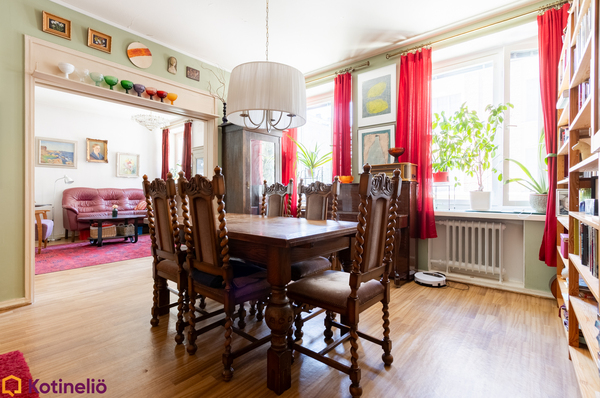 Tervetuloa tutustumaan tähän ainutlaatuiseen mahdollisuuteen. Tilava ja tunnelmallinen huoneisto vuonna 1939 valmistuneessa vankassa tiilitalossa, aivan Tammelan ytimestä! Asumisen ehdottomia valtteja ovat erinomainen sijainti, ratikka vieressä, uusi jalkapallostadion sekä keskustan palvelut kävelyetäisyydellä. Talossa on upeaa 30-luvun arkkitehtuuria, korkeat huoneet, leveät ikkunapenkit, erkkeri-ikkuna ja runsaasti luonnonvaloa.