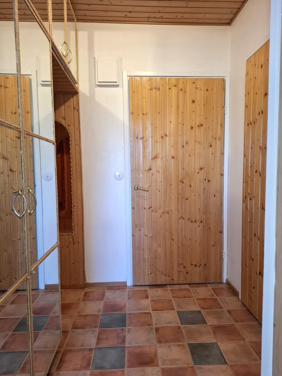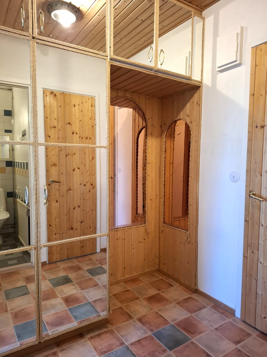 | Muiden tilojen kuvaus | Eteisessä lattia laatta, seinät maali. Kaapistot. Tilava vaatehuone. |