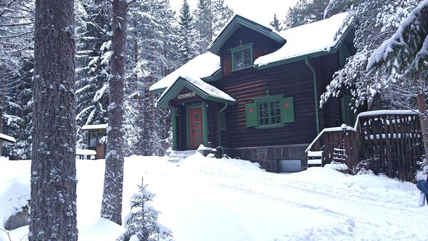 Alunperin Sääksjärven rannalle 1930 valmistunut hirsitalo, joka 1990 siirretty nykyiselle paikalleen. Päärakennuksessa kellarikerroksessa iso takkahuone, saunaosasto, wc ja puulämmitteinen lämmönjakokeskus. Keskikerroksessa keittiö, sali ja erillinen wc. Yläkerrassa tilava halli, työtila ja kaapistolla erotettu makuutila.