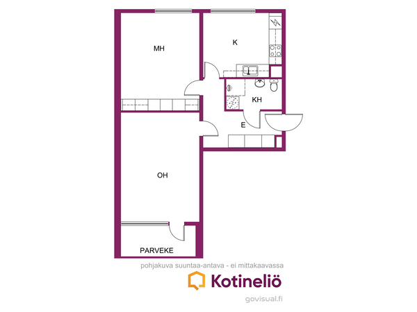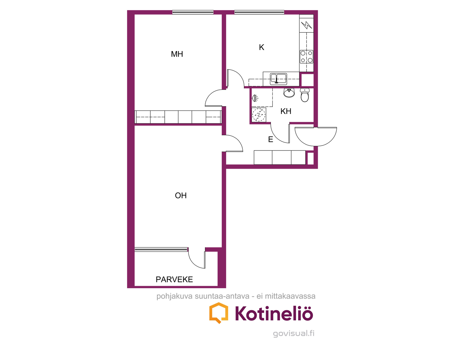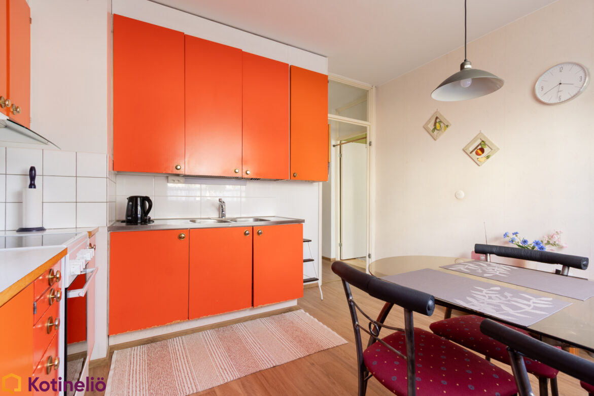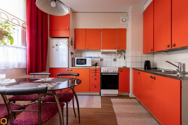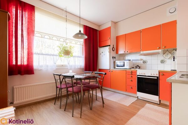 | Keittiön kuvaus | Seinät maalattu, lattia muovimatto. Alkuperäiset kaapistot, |