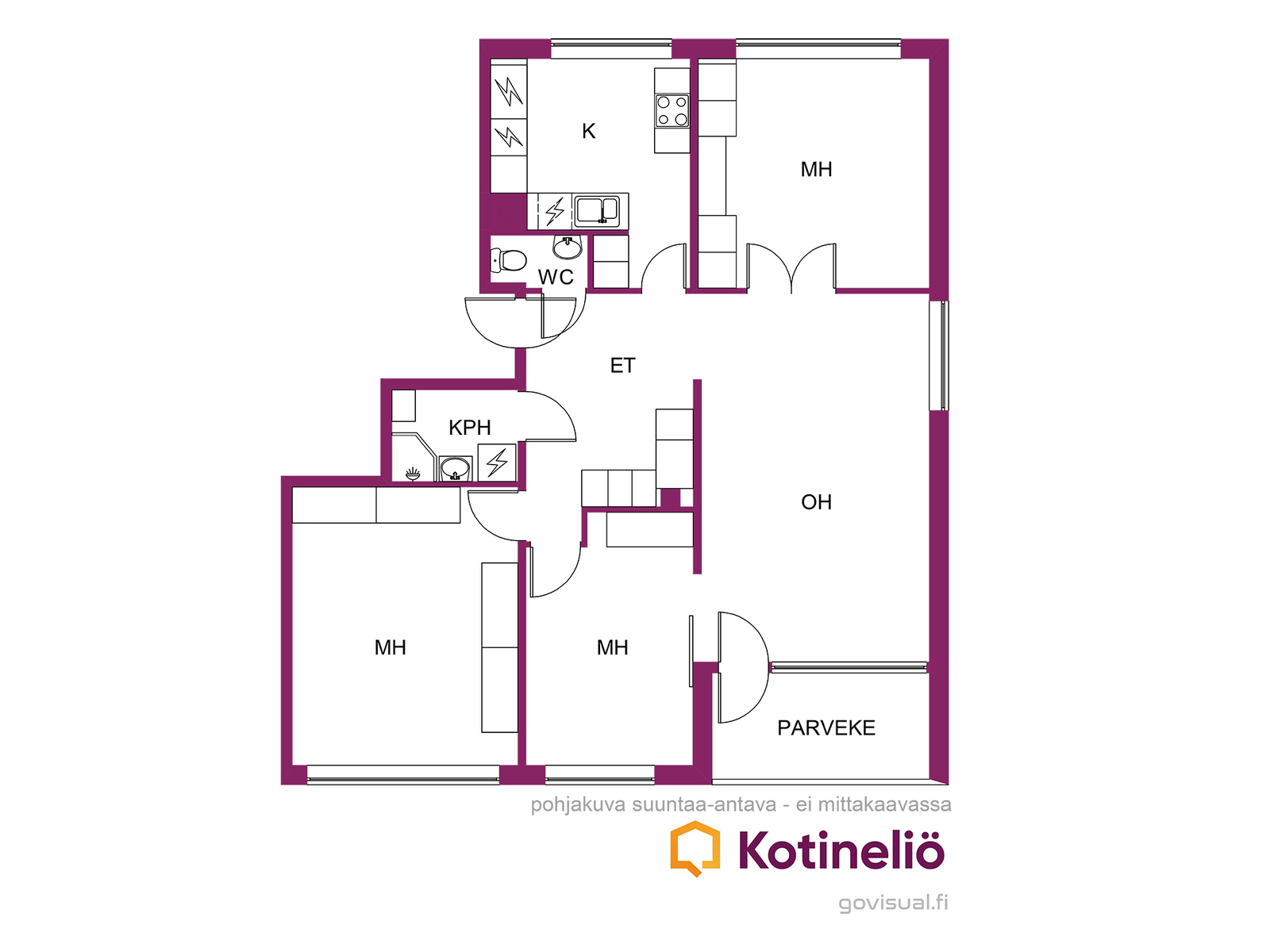 | Huoneiston kuvaus | 4h, k, kph, wc, las.p |