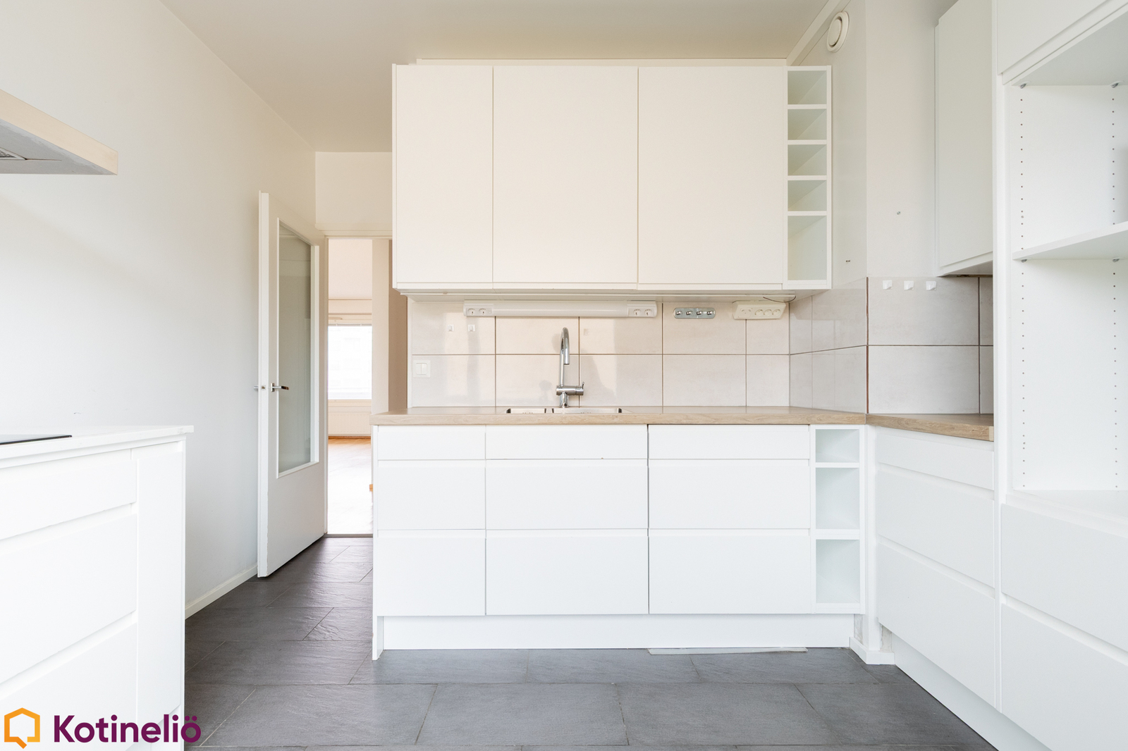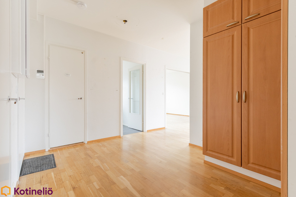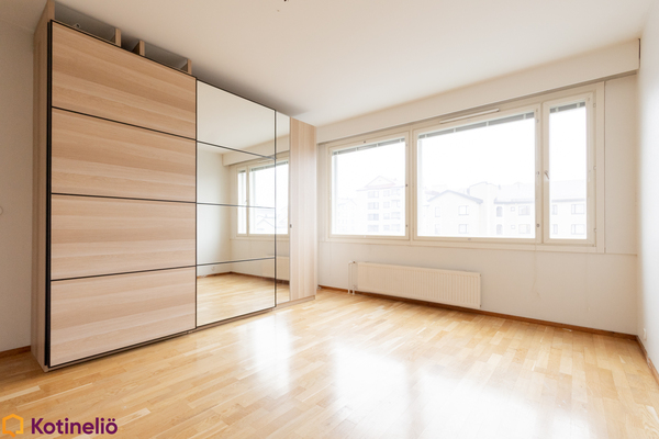 Tämä 5/6 kerroksen päätyasunto tarjoaa avarat ja valoisat huoneet sekä toimivan pohjaratkaisun. Makuuhuoneissa ja eteisessä on reilusti tilaa asumiseen ja säilytykseen, kylpyhuoneeseen mahtuu pesutorni ja erillinen wc lisää arjen sujuvuutta. Keittiössä on hyvin kaappi- ja työtilaa sekä paikka pienelle ruokapöydälle. Olohuoneesta on käynti lasitetulle parvekkeelle, joka tuo mukavasti lisätilaa ympäri vuoden.