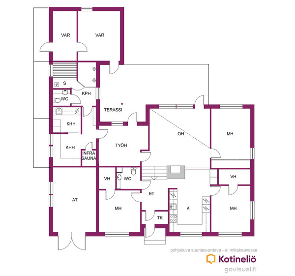| Muiden tilojen kuvaus | Työhuoneesta on käynti terassille. |