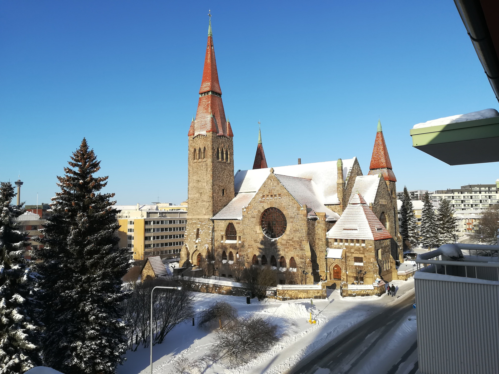 | Näköala | Upeat, esteettömät ja kauaskantoiset näkymät parvekkeelta Tuomiokirkon puiston yli ja kirkolle, keskustaan, Nokia Areenalle, sekä talon itäpuolelta Johanneksen koulun suuntaan. Näsinneula näkyy myös upeasti olohuoneen ikkunoista! |