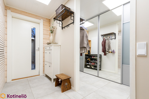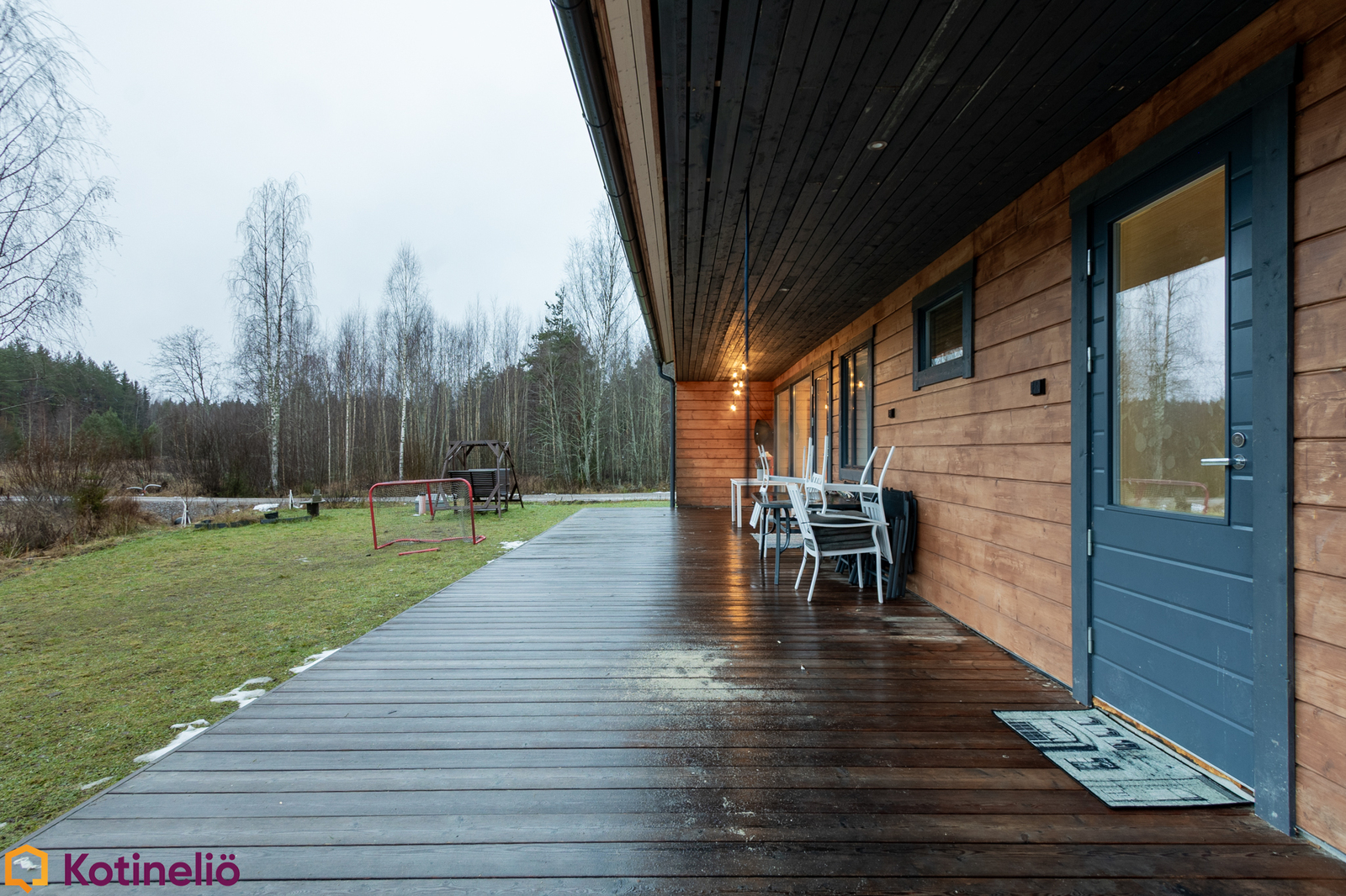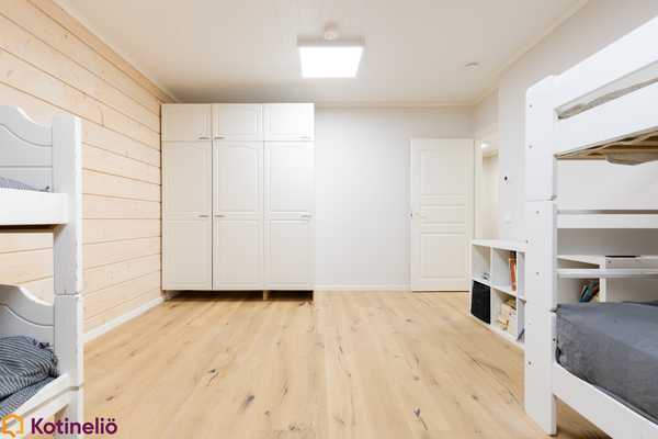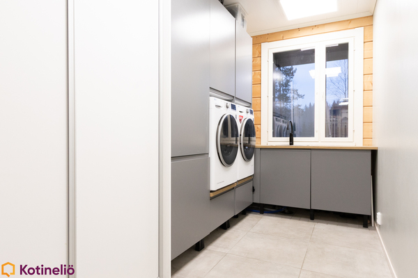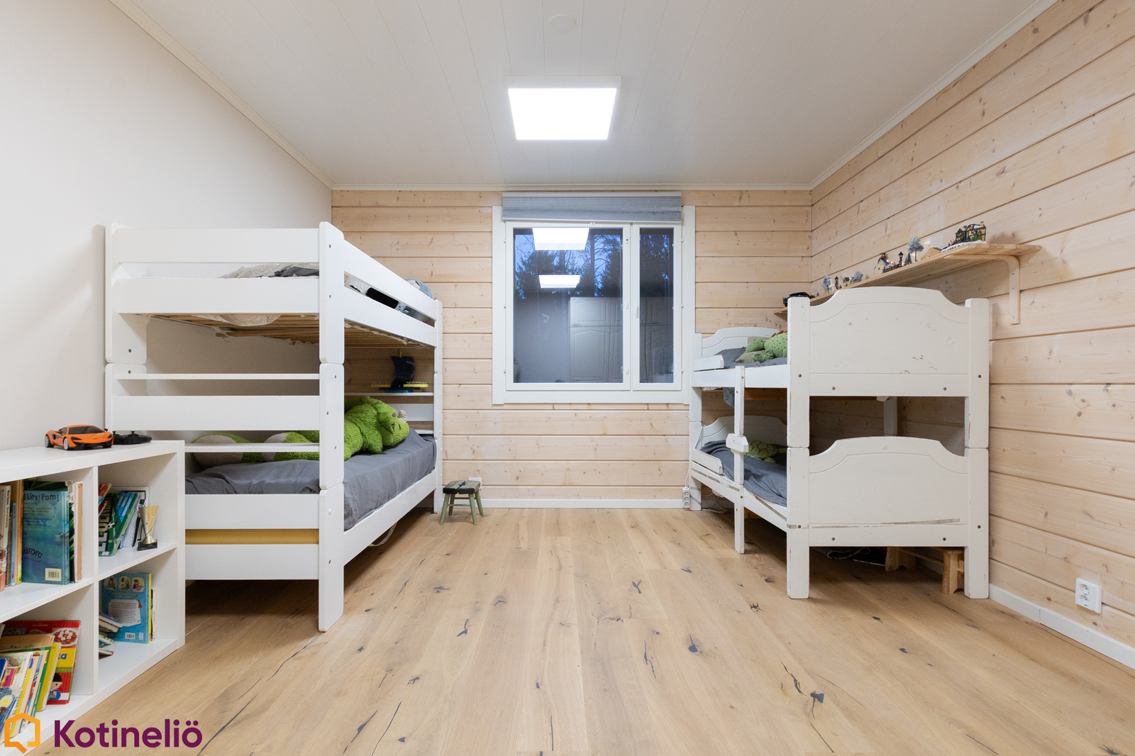 Kodin pohjaratkaisu on suunniteltu isonkin perheen arkeen. Avara olohuone-, ruokailu- ja keittiötila isolla saarekkeella, viisi makuuhuonetta, toimivat pesu- ja wc-tilat ja sauna, hyvin varusteltu kodinhoitohuone, eteinen ja perheen käyttöön lisäksi arkieteinen, runsaasti säilytystilaa koko talossa - nämä kaikki tekevät arjestasi erittäin sujuvaa.