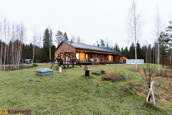 Vuonna 2021 valmistunut rakennus on hirsirunkoinen ja lämpiää energiatehokkaalla maalämmöllä. Koko asunnossa on vesikiertoinen lattialämmitys, joka tuo mukavuutta ja tasaisen lämmön jokaiseen huoneeseen. Pihapiiristä löytyvät lisäksi autokatos ja varasto. Edulliset asumiskustannukset!