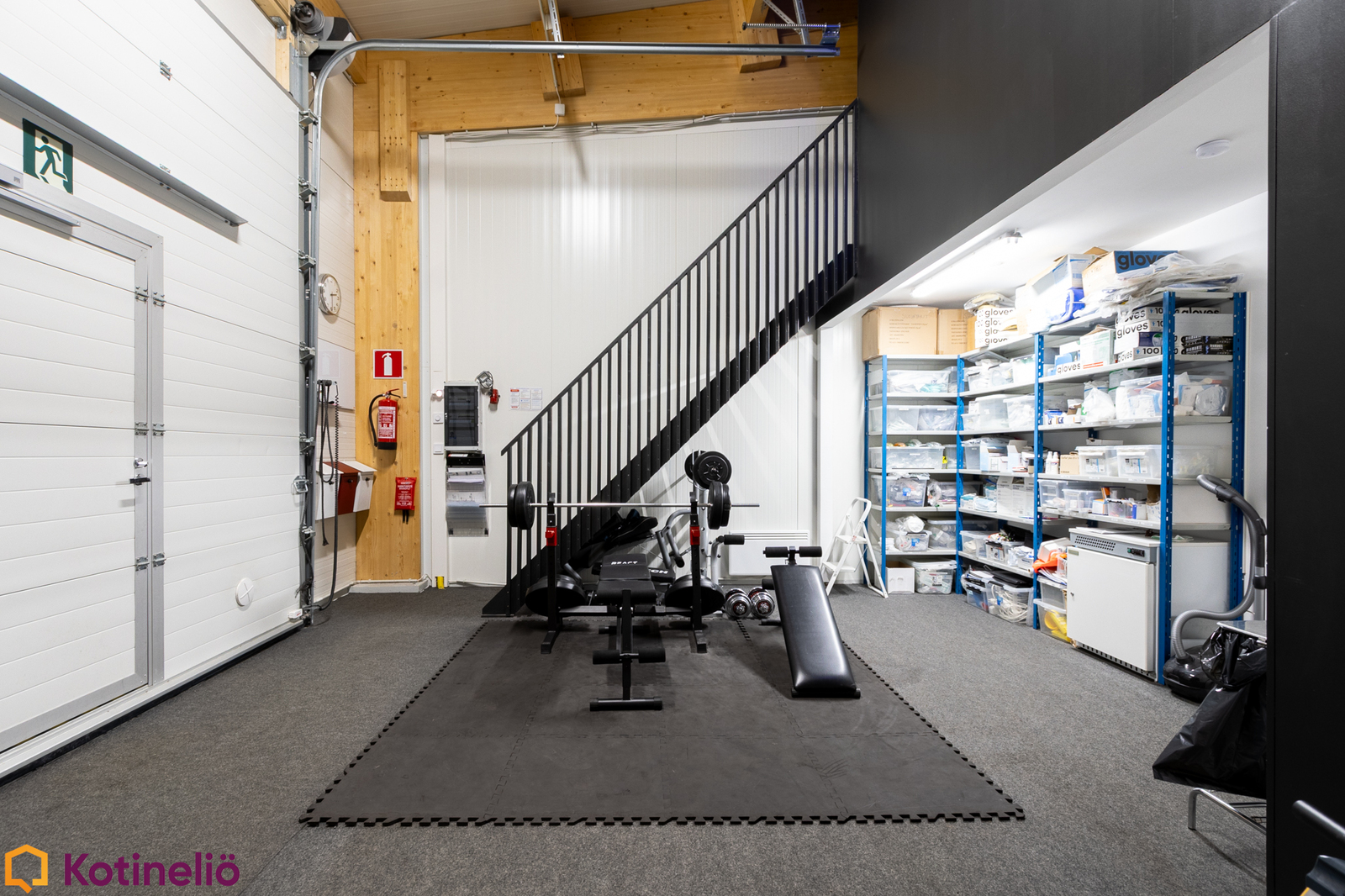 Vuonna 2021 valmistuneesta teollisuushallista kolmen tilan kokonaisuus. Kaksi halliosaa käsittää läpiajettavan koknaisuuden. Tilaa on korkeallekin autolle. Kolmas hallitila tällä hetkellä käytössä sosiaali- ja taukotilana. Sisällä lattiakaivot, joka mahdollistaa autojen pesun.